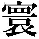 会意兼形声。下部は、環(まるい輪)のもとになる字で、まるく円を描く意を含む。寰はそれを音符とし、宀(やね)を加えた字で、屋根におおわれた、まるいわく内の場所のこと。