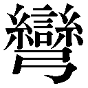 会意。上部の字は、糸がまがってもつれること。彎はそれと弓を合わせた字で、弓がまがってまるくそること。まるい意を含む。