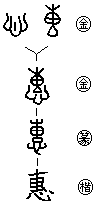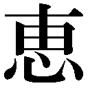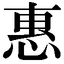 会意。惠の上部は、まるい紡錘(糸巻きの輪)をぶら下げたさま。惠は、それと心を合わせた字で、まるく相手を抱きこむ心をあらわす。