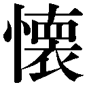 《訓読み》 なつかしむ/いだく/ふところにする(ふところにす)/ふところ/おもう(おもふ)/おもい(おもひ)/なつく/なつける(なつく)/なつかしい(なつかし)/なつかしみ