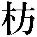 複数辞典一括検索+- (非使用)広辞苑大辞林新辞林大辞泉古語NHK 日本語発音アクセント辞典日国明鏡国語辞典新明解漢字源必携類類義使分大シ英辞郎研究社新英和大辞典ジーニアス英和大辞典ことわざ- (非使用)広辞苑大辞林新辞林大辞泉古語NHK 日本語発音アクセント辞典日国明鏡国語辞典新明解漢字源必携類類義使分大シ英辞郎研究社新英和大辞典ジーニアス英和大辞典ことわざ- (非使用)広辞苑大辞林新辞林大辞泉古語NHK 日本語発音アクセント辞典日国明鏡国語辞典新明解漢字源必携類類義使分大シ英辞郎研究社新英和大辞典ジーニアス英和大辞典ことわざ枋🔗⭐🔉【枋】 8画 木部 区点=5936 16進=5B44 シフトJIS=9E63 《音読み》 ホウ(ハウ)〈fng〉/ヒョウ(ヒャウ)/ヘイ 《意味》 {名}木の名。まゆみ(檀)の一種。車をつくるのに用いる。 「蘇枋スオウ」とは、南方に産する高木。赤い染料をとる。 {名}道具の柄。〈同義語〉→柄。 《解字》 形声。「木+音符方」。 《熟語》 →下付・中付語 漢字源に「枋」で始まるの検索結果 1-1。