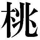 {名}もも。木の名。ばら科の落葉小高木。春に紅色、または白色の花が咲き、夏に実が熟する。実は二つに割れ食用にする。また、その実。「桃花」