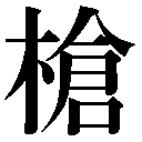 複数辞典一括検索+- (非使用)広辞苑大辞林新辞林大辞泉古語NHK 日本語発音アクセント辞典日国明鏡国語辞典新明解漢字源必携類類義使分大シ英辞郎研究社新英和大辞典ジーニアス英和大辞典ことわざ- (非使用)広辞苑大辞林新辞林大辞泉古語NHK 日本語発音アクセント辞典日国明鏡国語辞典新明解漢字源必携類類義使分大シ英辞郎研究社新英和大辞典ジーニアス英和大辞典ことわざ- (非使用)広辞苑大辞林新辞林大辞泉古語NHK 日本語発音アクセント辞典日国明鏡国語辞典新明解漢字源必携類類義使分大シ英辞郎研究社新英和大辞典ジーニアス英和大辞典ことわざ槍🔗⭐🔉【槍】 14画 木部 区点=3368 16進=4164 シフトJIS=9184 《音読み》 ソウ(サウ)/ショウ(シャウ)〈qing〉 《訓読み》 やり 《意味》 {名}やり。柄の先端に細長い刃をつけた武器。また、細長い棒や竹柱。 {動}さっととびつく。つき進む。▽搶ソウに当てた用法。 {名}草を刈る道具。 {名}〔俗〕鉄砲。〈同義語〉→鎗。 《解字》 形声。「木+音符倉」。 《単語家族》 牀ショウ(細長い板)と同系。 《熟語》 →熟語 →下付・中付語 槍手 ソウシュ🔗⭐🔉【槍手】 ソウシュ やりを使う兵士。『槍兵ソウヘイ』 槍幹 ソウカン🔗⭐🔉【槍杆】 ソウカン =槍竿・槍桿・槍幹。やりの柄。 槍旗 ソウキ🔗⭐🔉【槍旗】 ソウキ やりと、旗。細くつき出た茶の芽(やりにたとえる)と、開いた茶の葉(旗にたとえる)。「幽叢半吐槍旗短=幽叢半バ吐ク槍旗ノ短キヲ」〔→高啓〕 漢字源に「槍」で始まるの検索結果 1-4。