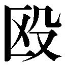 {動}うつ。なぐる。杖ツエで人や物をうちすえる。なぐりつける。「殴打」
