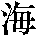 会意兼形声。「水+音符毎」で、暗い色のうみのこと。北方の中国人の知っていたのは、玄海・渤ボツ海などの暗い色の海だった。▽音符の毎は子音が変化し、海・晦・悔などにおいてはカイ(ク