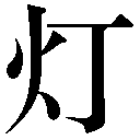 (B)【灯】会意兼形声。灯は「火+音符丁(=停。とめおく)」で、元ゲン・明ミン以来、燈の字に代用される。