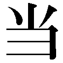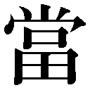 形声。當は「田+音符尚ショウ」。尚は、窓から空気のたちのぼるさまで、上と同系。ここでは単なる音符にすぎない。當は、田畑の売買や替え地をする際、それに相当する他の地の面積をぴたりと引きあてて、取り引きをすること。また、該当する(わく組みがぴったりあてはまる)意から、当然そうなるはずであるという気持ちをあらわすことばとなった。→尚