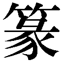 会意兼形声。「竹+音符彖タン(垂れる)」。下へ垂れた形の筆法で書かれた字。