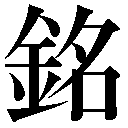 メイズ{動}しるす。いわれを書きしるす。また、転じて、心に刻みつけて忘れないようにする。「感銘」「銘肝=肝ニ銘ズ」「銘心鏤骨、無報上天=心ニ銘ジ骨ニ鏤リ、上天ニ報ユル無シ」〔→柳宗元〕