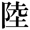 {名・形}おか(ヲカ)。水上に対して、かわいた土地のこと。また、陸上で行われるさま。「陸行(陸上を旅する)」「陸産」「陸運」「登陸(上陸する)」