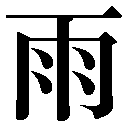 {名}あめ。空から降るあめ。▽すみずみまでうるおす恩恵や、おおいかぶさるほど多いものにたとえることもある。「降雨」「斉子帰止、其従如雨=斉ノ子ハ帰ギシトキ、ソノ従ハ雨ノゴトシ」〔→詩経〕