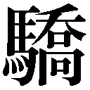 会意兼形声。「馬+音符喬キョウ(高くのびて先が曲がる)」。背の高い馬。また、高く上に出て、他を見さげること。