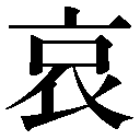 {名・形}かなしみ。かなしい(カナシ)。つらくて胸のつかえたような気持ち。また、そのような気持ちであるさま。「悲哀」「喜怒哀楽」「嗚呼哀哉=アア哀シイカナ」〔→韓愈〕