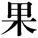 {名}結果の果。成長したあげくに木の実がなるように、事がらが進んでしまったあとに生じるもの。「成果」