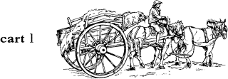 cart /kt | kt/ n. 1 (農場などで用いる, 馬や牛が引く二輪または四輪の)荷車 (cf. wagon). 2a (商品配達用などの二輪の)運搬車, 荷車. ・a baker's [butcher's] cart. ・a coal cart. b (一頭立て二輪の)軽装馬車. 3a (二輪の)小型手押し車, カート. bgolf cart 4 《廃》 戦車 (chariot). in the crt 《英俗》 ひどい目に遭って, 困って (in a fix). 《1889》 pt [st] the crt befre the hrse 前後を誤る, 本末を転倒する. 《1520》 wlk the crt 【競馬】 =WALK over (1). vt. 1 荷車で運ぶ. cart hay to the farm. 2 《口語》 a (力ずくで)運び去る 〈off, away〉. cart a person off to jail 人を刑務所に引っぱって行く. Cart yourself off! あっちへ行ってくれ. b 苦労して運ぶ. 3 《古》 罰に荷車のあとにつけて引き回す. 4 【クリケット】 〈ボールを〉強打する. vi. 1 荷車を引く, 荷馬車業をする. 2 【クリケット】 強打する. cart・a・ble /kb | kt-/ adj. 《?c1200》 carte (i) 《音位転換》 ← OE crt (ii) ON kartr cart ← IE ger- curving, crooked cart 【挿絵】