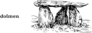 n. 【考古】 ドルメン, 巨石墳, 支石墓《2 個以上の自然石を立ててその上に大きな平石を載せたもので新石器-青銅器時代の墓の一形式; cf. cromlech》.