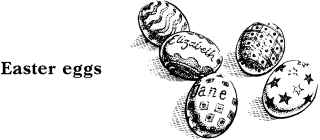 n. 復活祭の(飾り)卵《復活祭に贈り物とする彩色した卵で, 中には鶏卵に似せて作ったチョコレートやおもちゃなどもある》.