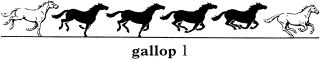 1 ギャロップ, 襲歩, 競走駆歩(かけあし) 《四足獣, 特に馬が 1 脚着地するとその直後宙に浮いて駆ける最も速い 3 拍子の駆け方; 右前脚と左後脚(またはその逆)が対になって着地する; cf. gait1 3》.
