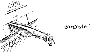 1 【建築】 ガーゴイル, 樋嘴(ひはし) 《ゴシック建築に用いられる鬼・怪獣などの形に作った屋根の水の落とし口》.