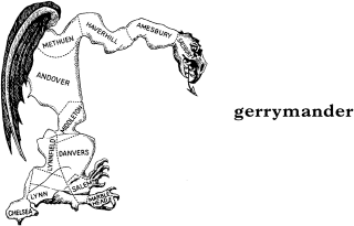 《1812》 ← (Elbridge) Gerry+(SALA)MANDER: 彼が Massachusetts 州知事時代 (1812) に改めた同州の選挙区の地形が salamander に似たことによる