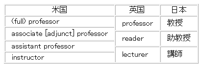 【語法】 (1) 肩書としては準教授・助教授にも用いる. 米国の大学では full 〜 (正教授), associate [adjunct] 〜 (準教授), assistant 〜 (助教授)の順, 英国の大学では講座担当の教授を professor といい, その下は reader (助教授)という. (2) 姓名の前ではしばしば Prof. と略す, ただし姓だけに直接つける場合には略さない: Prof. William Clark / Professor Clark. (3) 《米》 では呼び掛けのときには普通 Dr. Clark, Mr. [Mrs.] Clark のようにいう.