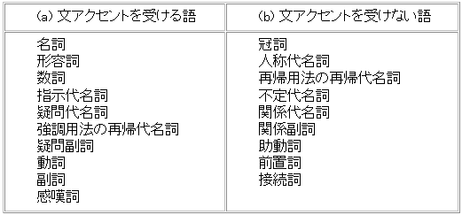 m. のように一様ではない. 文アクセントを受ける語は意味内容がはっきりした「内容語」で, これに対して日本語の「てにをは」のようにそれ自体の意味が曖昧で, 内容語をつなぐ役目をする「機能語」のことが多い.