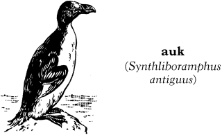 n. 【鳥類】 ウミスズメ《北半球の沿岸に生息するウミスズメ科の鳥類の総称; ヒメウミスズメ (little auk, dovekie) など; cf. great auk, razorbill》.🔗⭐🔉