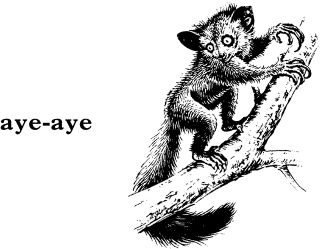 n. 【動物】 アイアイ, ユビザル (Daubentonia madagascariensis) 《Madagascar 島産の原始的なキツネザル; 夜行性で中指の特有の長い爪で卵🔗⭐🔉