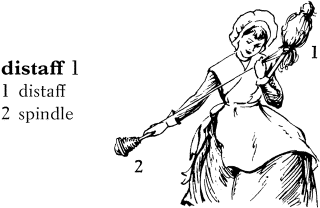 1 【紡織】 糸巻棒[竿] 《昔この棒に羊毛や亜麻をからみ付けて指で糸を操った》; 糸車に取り付けた同様の棒.