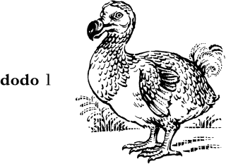 1 【鳥類】 ドードー (Raphus cucullatus) 《ガチョウほどの大きさの, 翼が退化して飛べない鳥; かつてインド洋の Mauritius 島に住んでいたが, 17 世紀末に絶滅》.