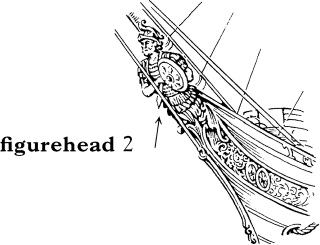2 【海事】 船首像, フィギュアヘッド《水切りの直上を飾る全身・半身または首だけの彫像》.