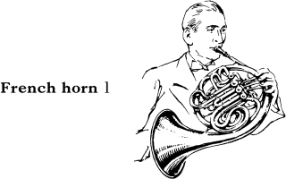 1 フレンチホルン, フレンチホーン《渦巻形の金管楽器; cf. horn 4 a》.