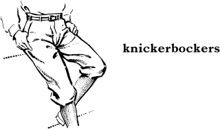 《1809》 ← Diedrich Knickerbocker: Washington Irving が History of New York (1809) を書いた時の変名, この書に英国の画家 Cruikshank が半ズボンをはいたオランダ移民を描いたのによる