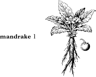 LL mandragora (↑): 今の形はその根の形から MAN1+DRAKE1 (=dragon) と解した民間語源による