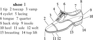 b シューピース (shoe piece) 《船尾骨材の一部で, 舵とプロペラ柱と間の下部水平部材》.