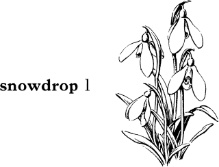 1 スノードロップ, マツユキソウ, (俗に)ユキノハナ (Galanthus nivalis) 《南ヨーロッパ原産の庭園用の植物; 花は雪白色》.