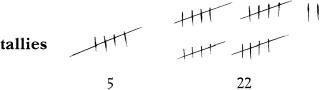 6 (個数を数えながら記録する)マーク, しるし《5 を表す