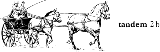 a 縦並びに馬車につないだ二頭の馬 (cf. randem).