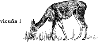 1 【動物】 ビクーナ (Lama vicugna) 《ペルー・ボリビア・エクアドル地方のラクダ科の哺乳類》.