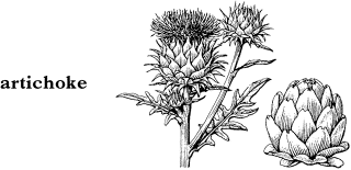 1a アーティチョーク, チョウセンアザミ (Cynara scolymus) 《花托(かたく)を食用にする; globe artichoke ともいう》.