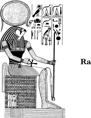 n. 【エジプト神話】 ラー, 太陽神, 日神 (sun god) 《鷹の頭をもつ人間の姿で表される最高神; 頭上には太陽を示す円盤 (solar disk) と王者の象徴である蛇を載せている》.