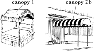 1 天蓋(がい) 《玉座・説教壇・寝台・高貴な人などの上に設けた覆い》.