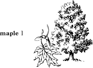 1a 【植物】 カエデ, モミジ《カエデ属 (Acer) の植物の総称; イロハカエデ (Japanese maple) など》.