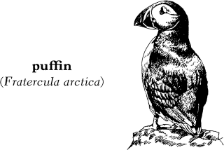 n. 【鳥類】 北太平洋・北大西洋に分布するツノメドリ属 (Fratercula) とエトピリカ属 (Lunda) の海鳥の総称《溝のついた大きな平たいくちばしがある; ニシツノメドリ (F. arctica), ヒメツノメドリ (Atlantic puffin) など》.