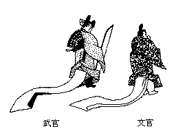 束帯を着用する。正式の礼服を身につける。「ハジメテ本々(ホンボン)ニ―・ウタガ/天草本平家 3」