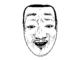 ③能面。眉根を寄せた色白の男面。貴公子の霊に用いる。