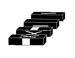 ①易えきで爻こうを組み合わせて卦けの形を表す具。長さ約10センチメートルの正方柱体の6個1組の木で、四面はそれぞれ図のような形をなす。