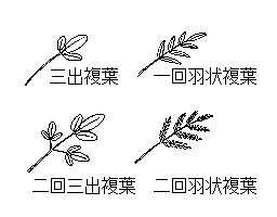 (1)葉身が二枚以上の小葉よりなる葉。小葉の並び方により,掌状複葉(アケビなど)・羽状複葉(フジなど)など,その形状により多くの呼び方がある。